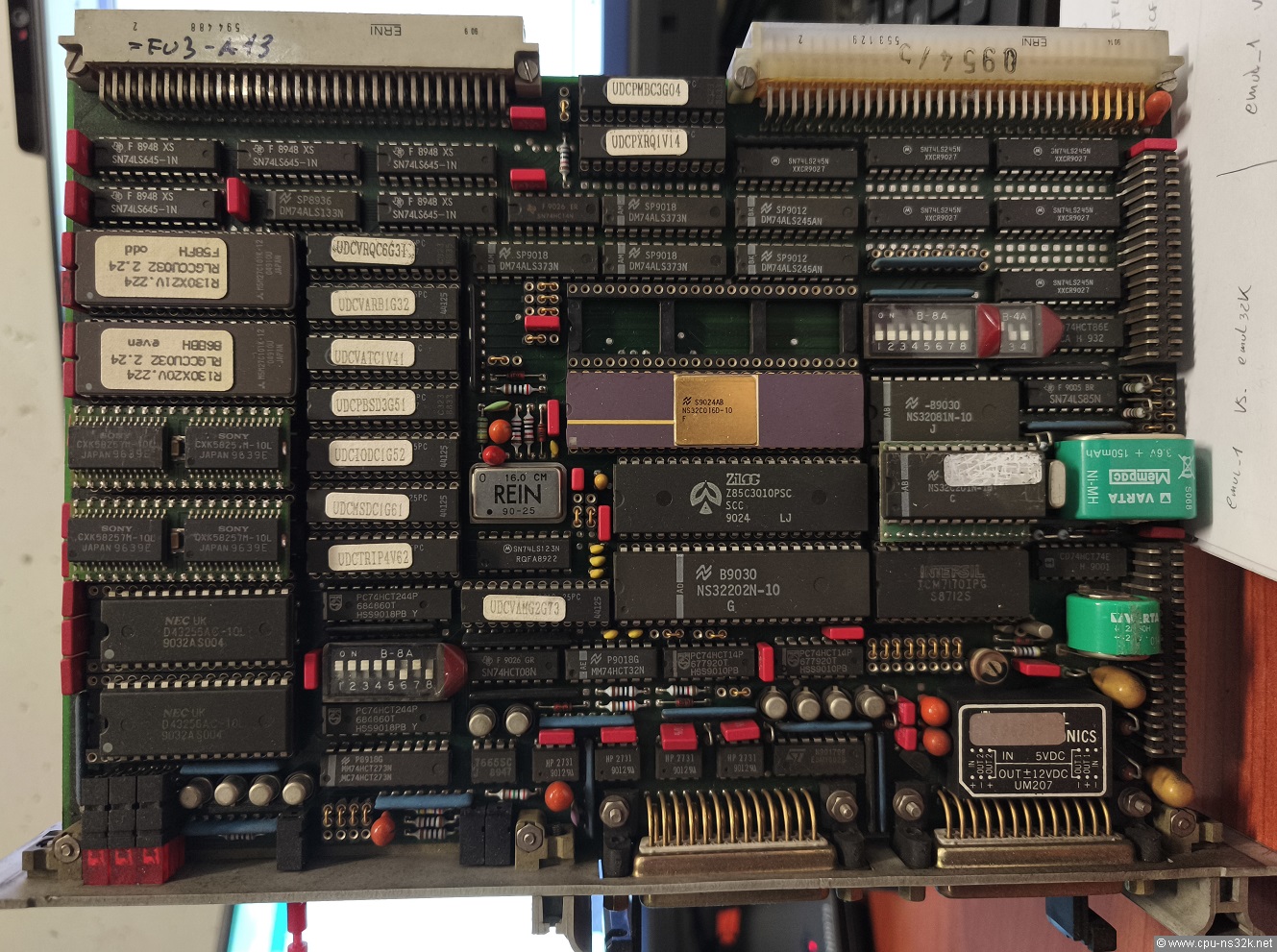 The date of the programs is 1986. At this time the NS32CG16 did not exist. Obviously there must exist a predecessor of the board based on some earlier processor of the NS32000 family. A search with the words "LOGIDYN" and "AEG" resulted in a company named AEG Industrial Engineering. They still provide a service for old industrial control systems from AEG. But they couldn't help me.