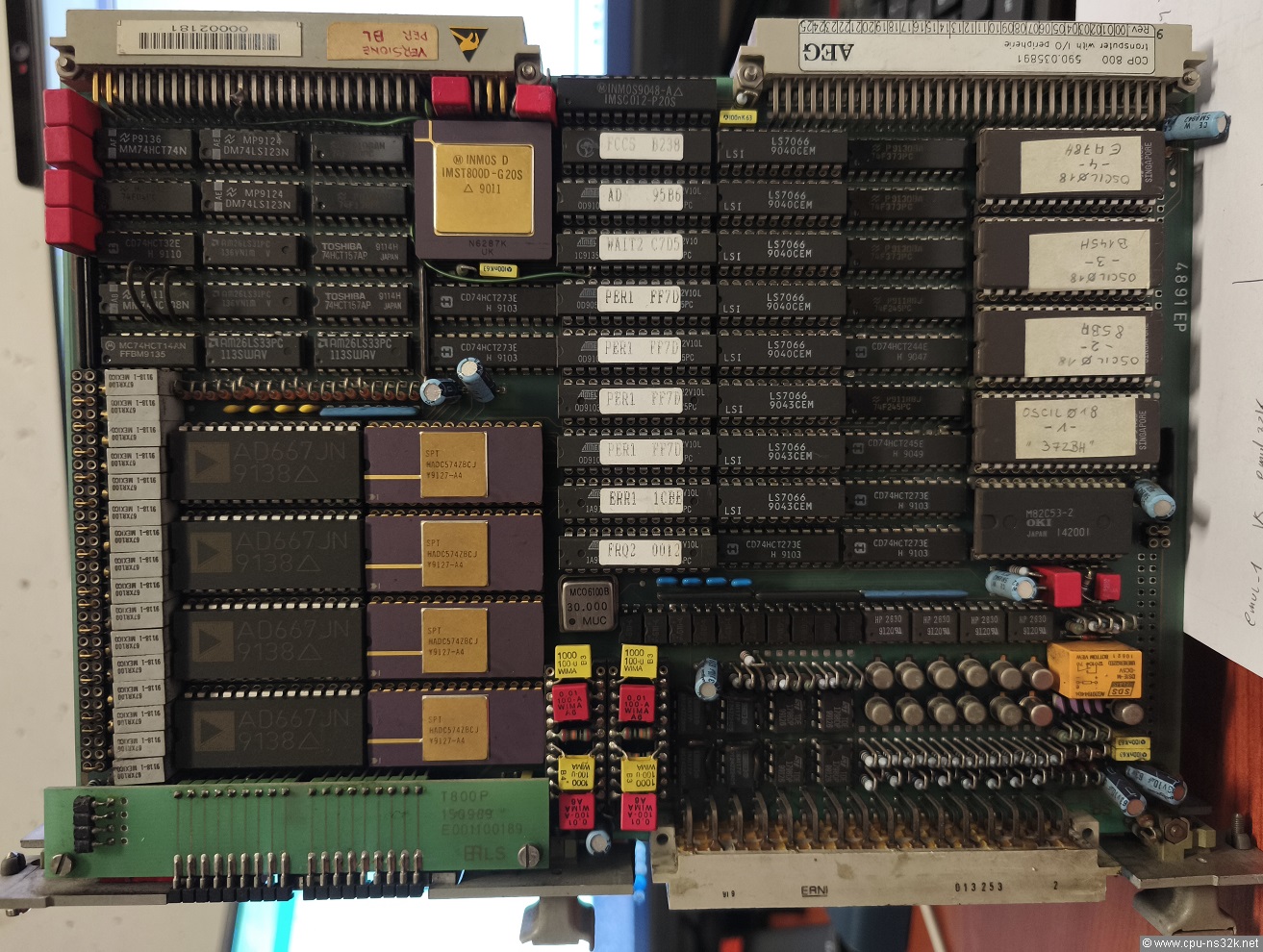 In May 2018 I learned that the german company AEG had built a measurement board based on a Series 32000 processor. The board in Figure 1 was obviously an analog control board and was used in a big system in the pharma industry according to the previous owner. The name of the board could be MCU032. This is printed on the backside.
