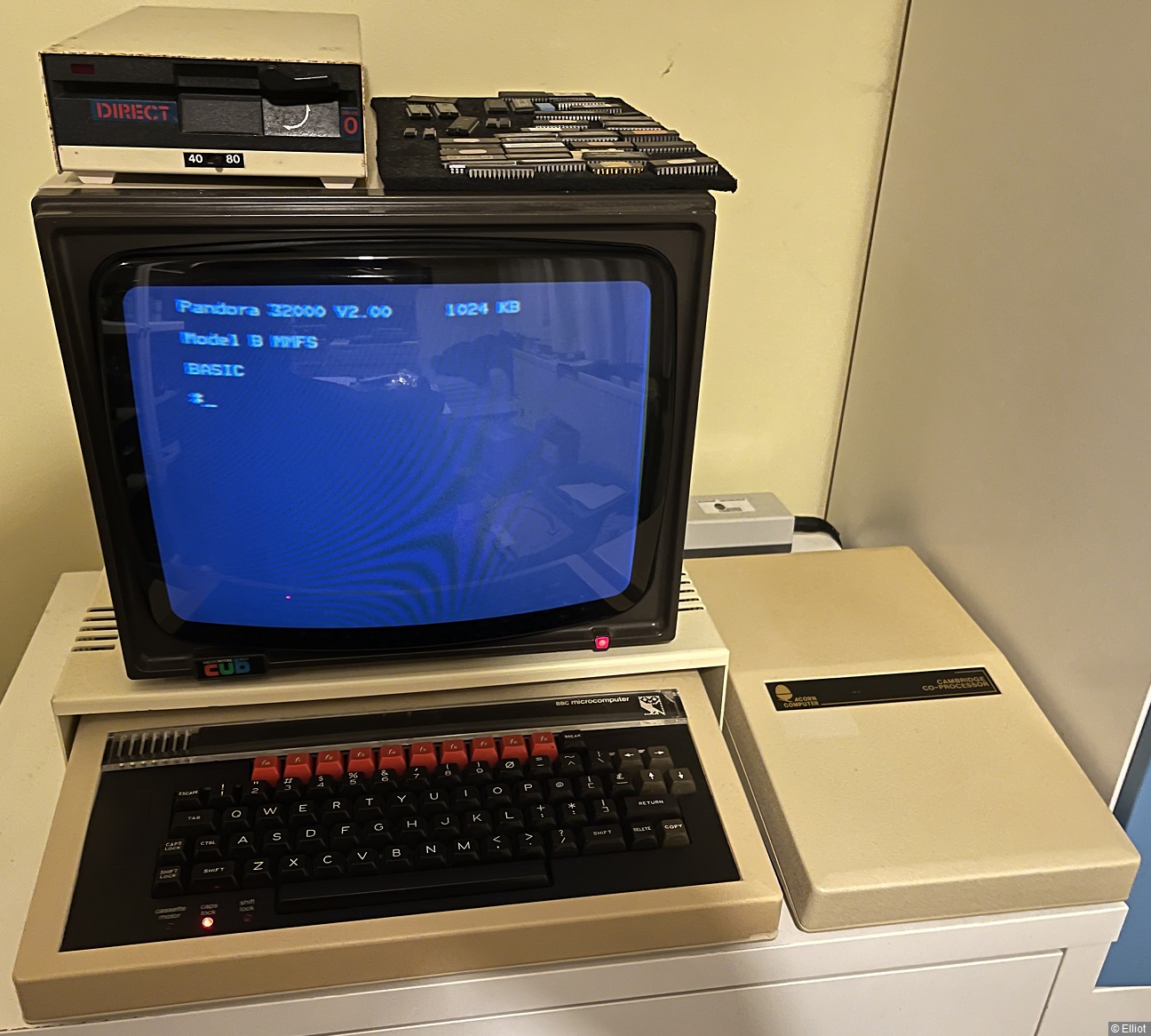 In January 2026 I got an email from Elliot. He told me that he has a BBC computer with a Series 32000 Second Processor. The system is fully functional. And it still uses a tube monitor - great. The other nice thing about it is the 5¼ floppy drive. The next Figure shows the system.